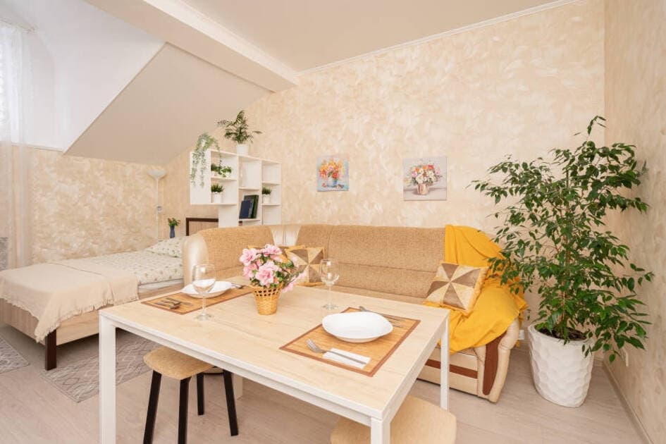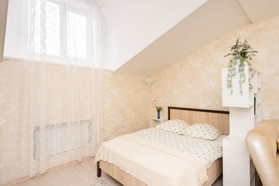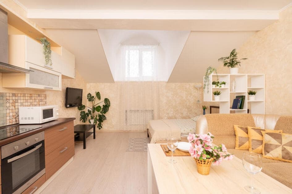 В квартире-студии «Централ Студио Хоум Казань» площадью 45 квадратных метра проведён современный ремонт и интерьер жилья подобран в модном скандинавском стиле. Для наших гостей доступна двуспальная кровать-ниша 200x140 см с мягким и комфортным матрасом, диван-кровать шириной 160 см, ЖК телевизор с кабельным телевиденьем, высоко скоростной интернет с доступом WiFi, раздельный санузел с ванной и стиральной машиной, комплект полотенец, шампунь, гель для душа.